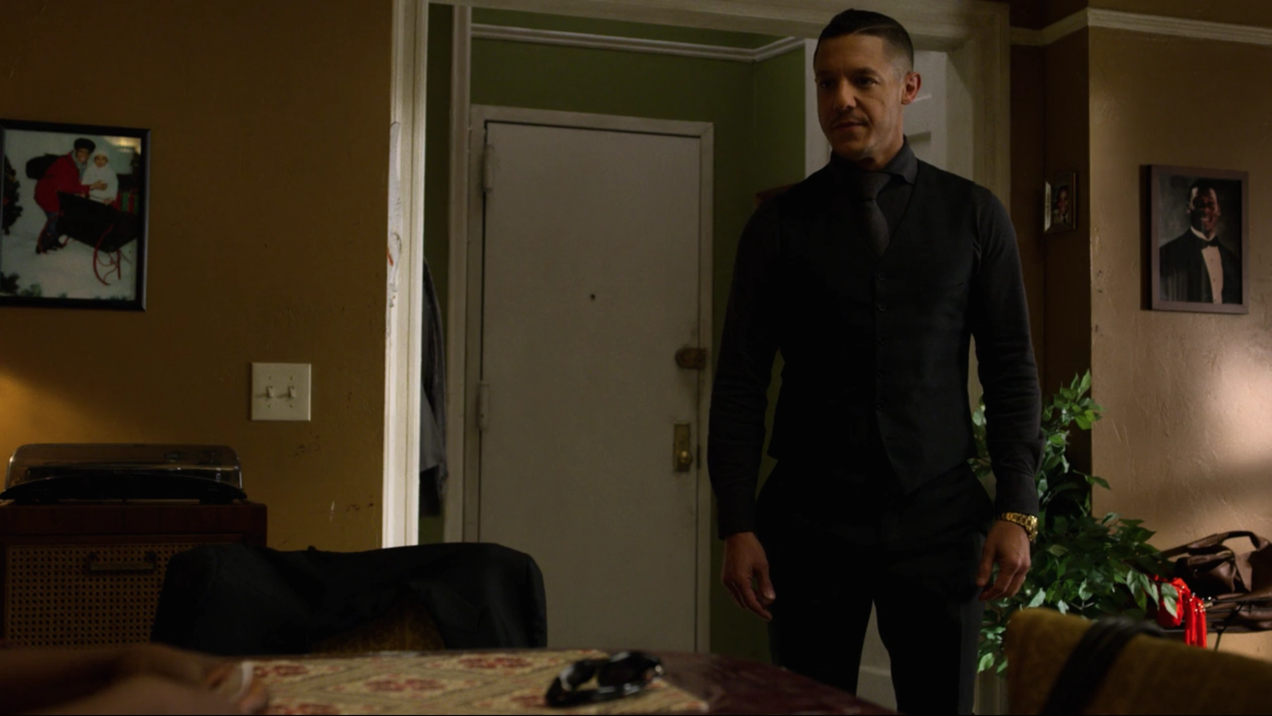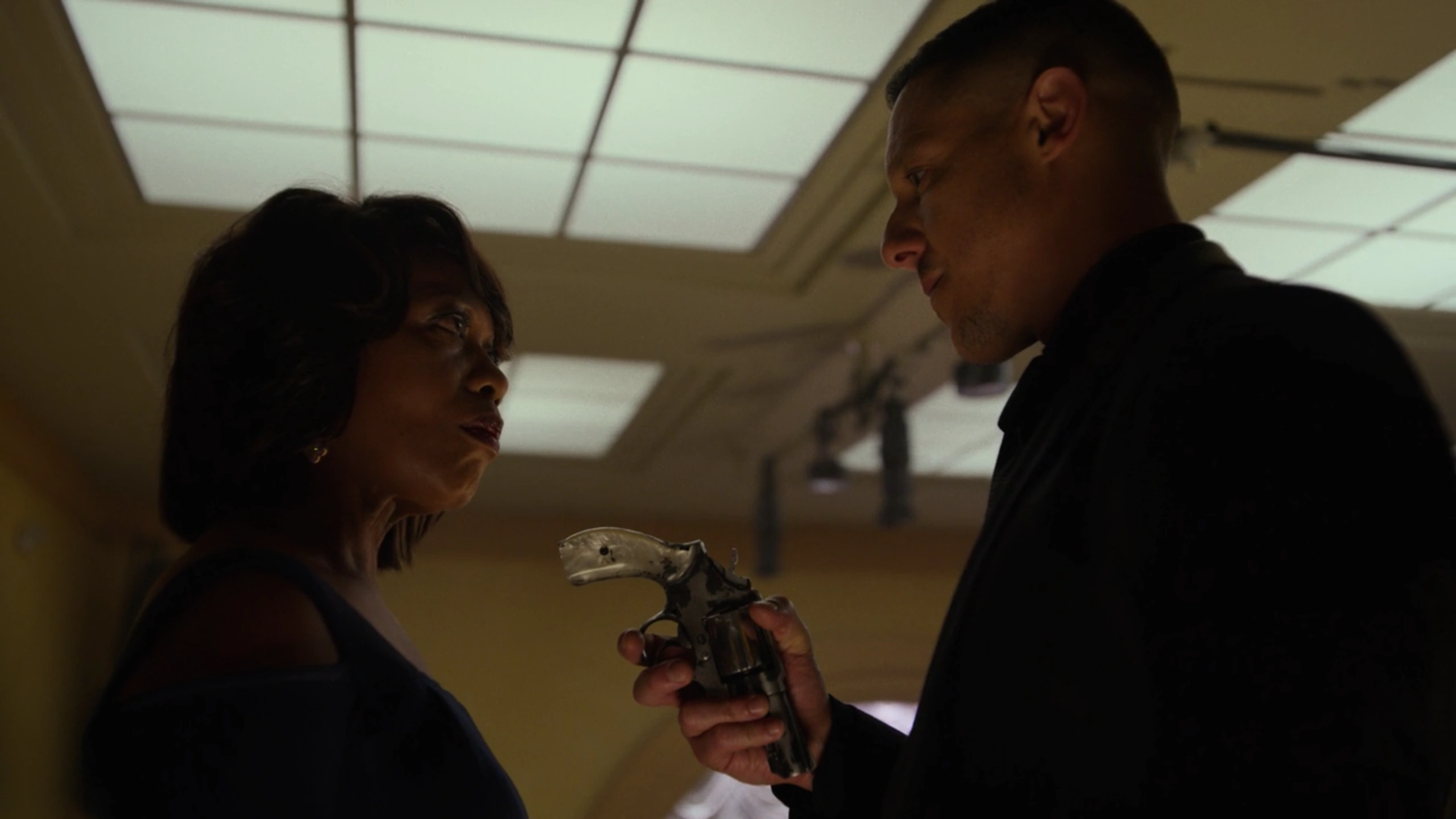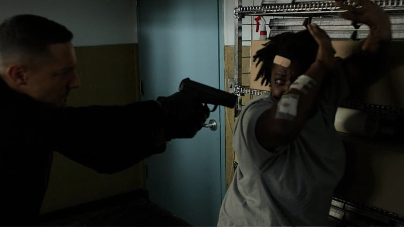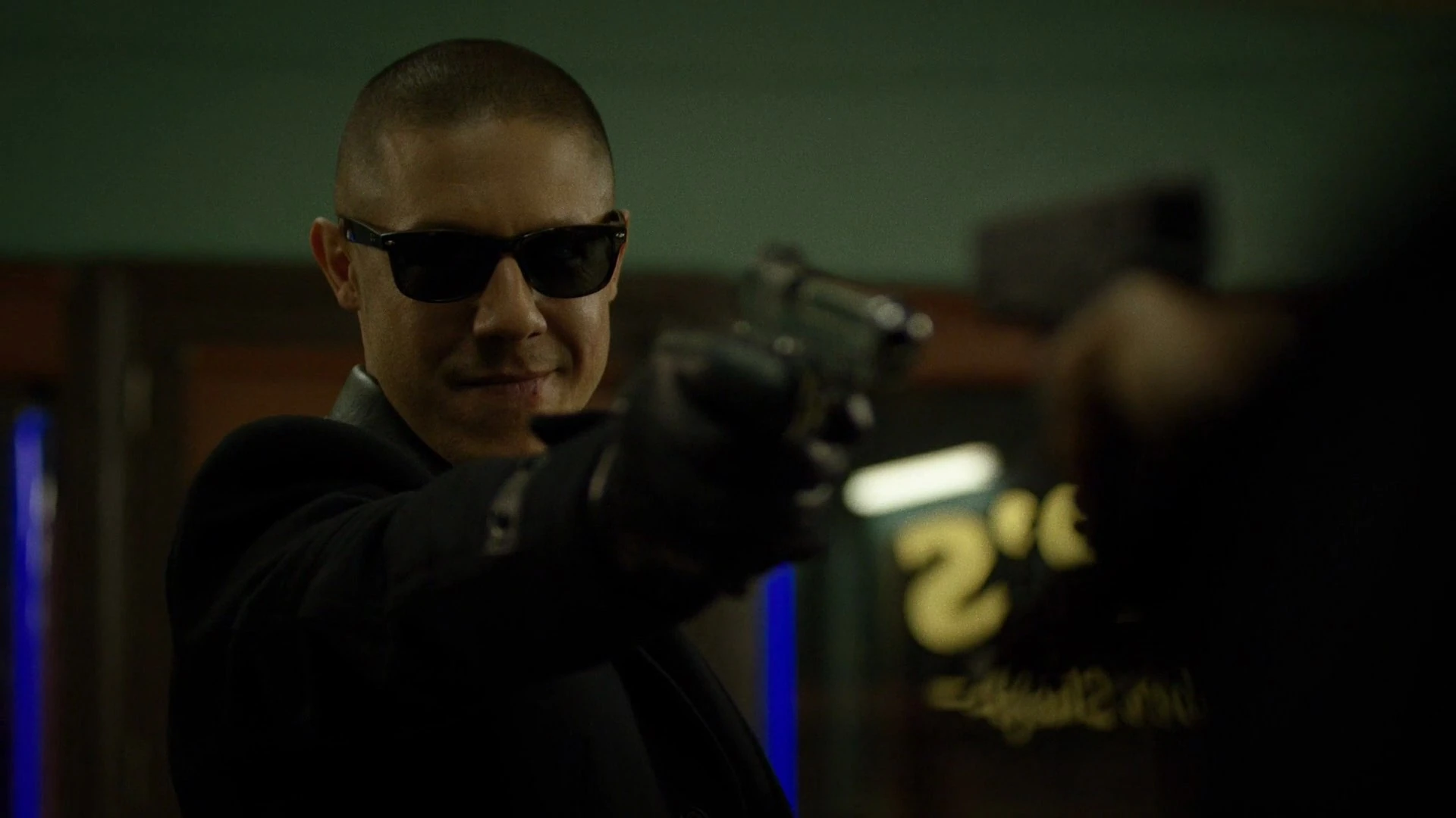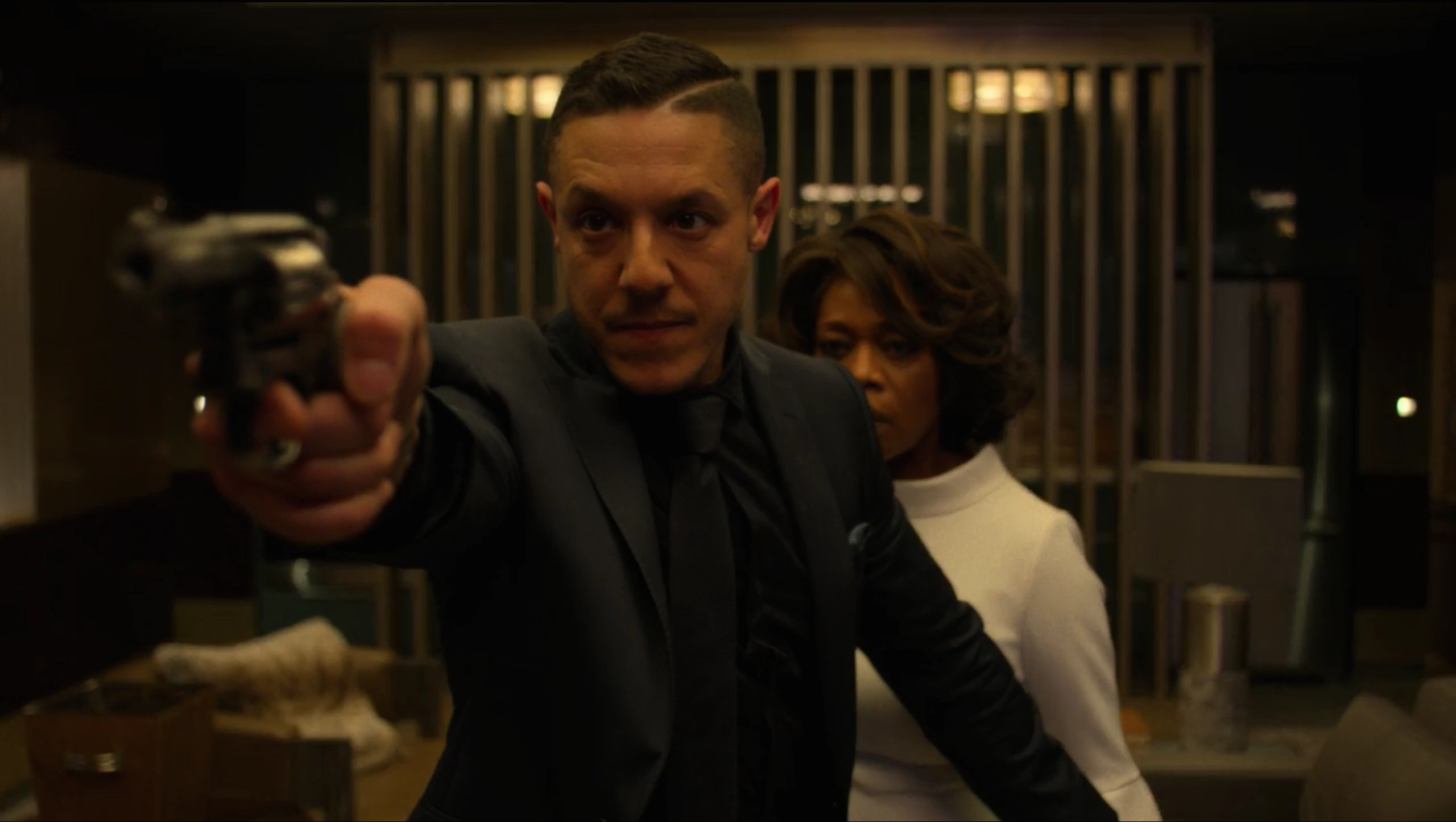 Handgun: A henchman working on Mariah Dillard's orders ambushed Shades and tried to kill him, though Shades overpowered and disarmed him. He shot him twice to the chest, and after asking for his phone, Shades shot him again to kill him.