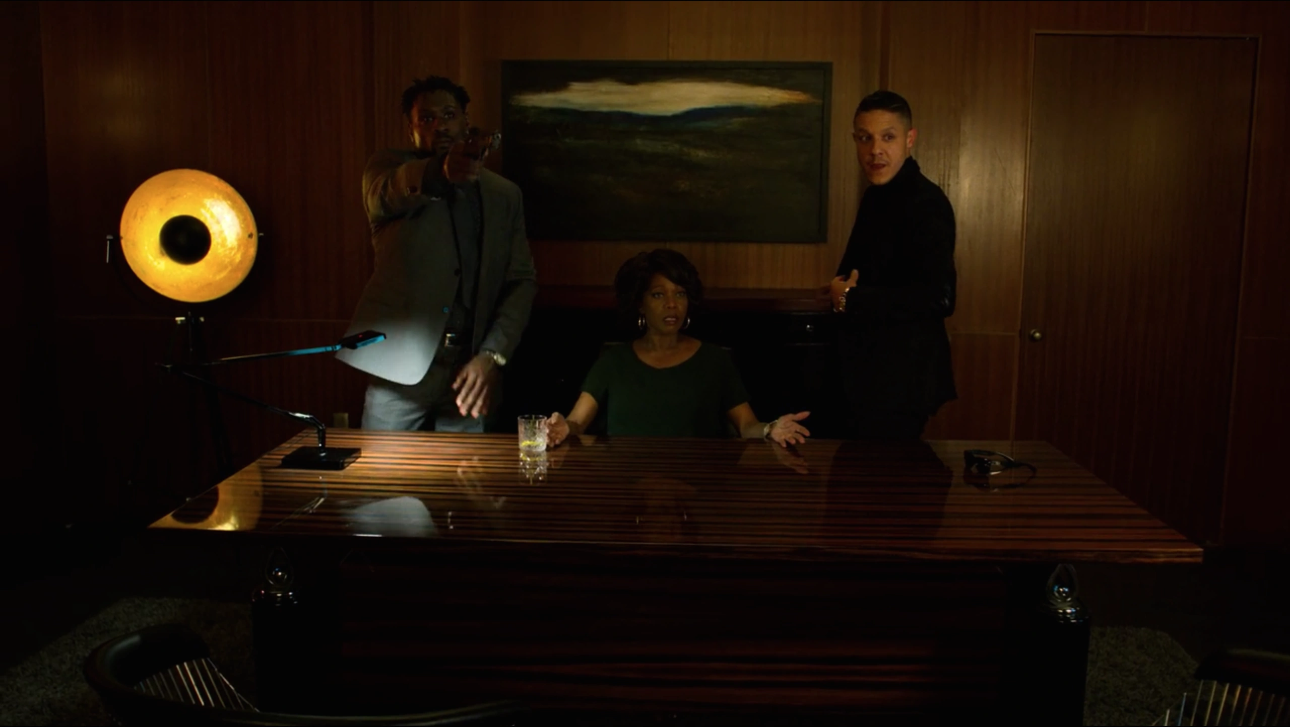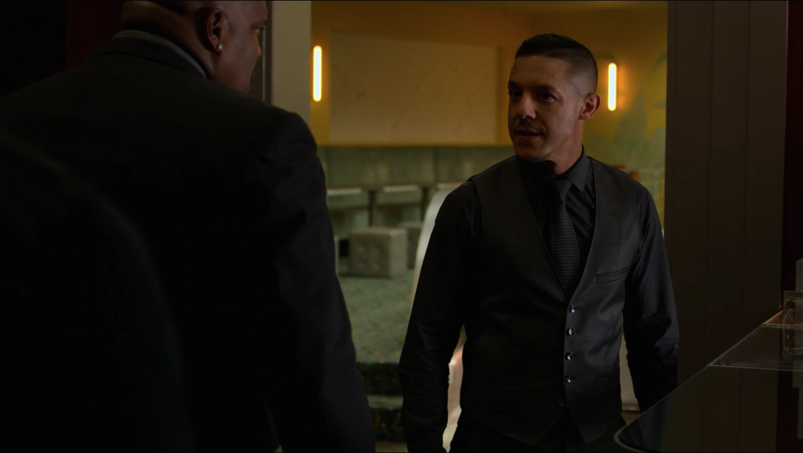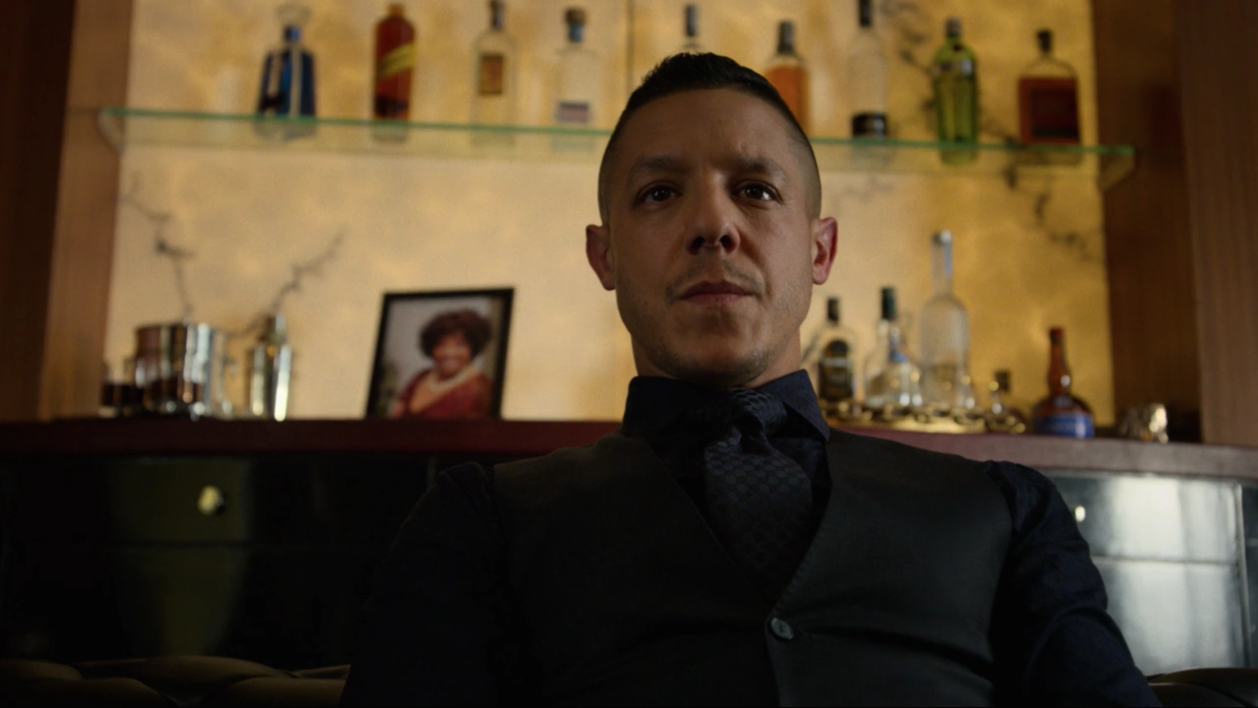 Shades then stayed with Cottonmouth as they visited the office of Cottonmouth's cousin, Mariah Dillard to deliver the money they had recovered from Shameek Smith. Dillard, however, was not impressed and reminded Cottonmouth that she needed the rest and this was his fault as she had stolen the money to fund Harlem's Paradise before Stokes had made a failed gun deal with Domingo Colon which had endangered them all. She then mocked Shades by calling him a guard dog and asking if he needed water before completing her talk with Cottonmouth about reclaiming the money.[12]