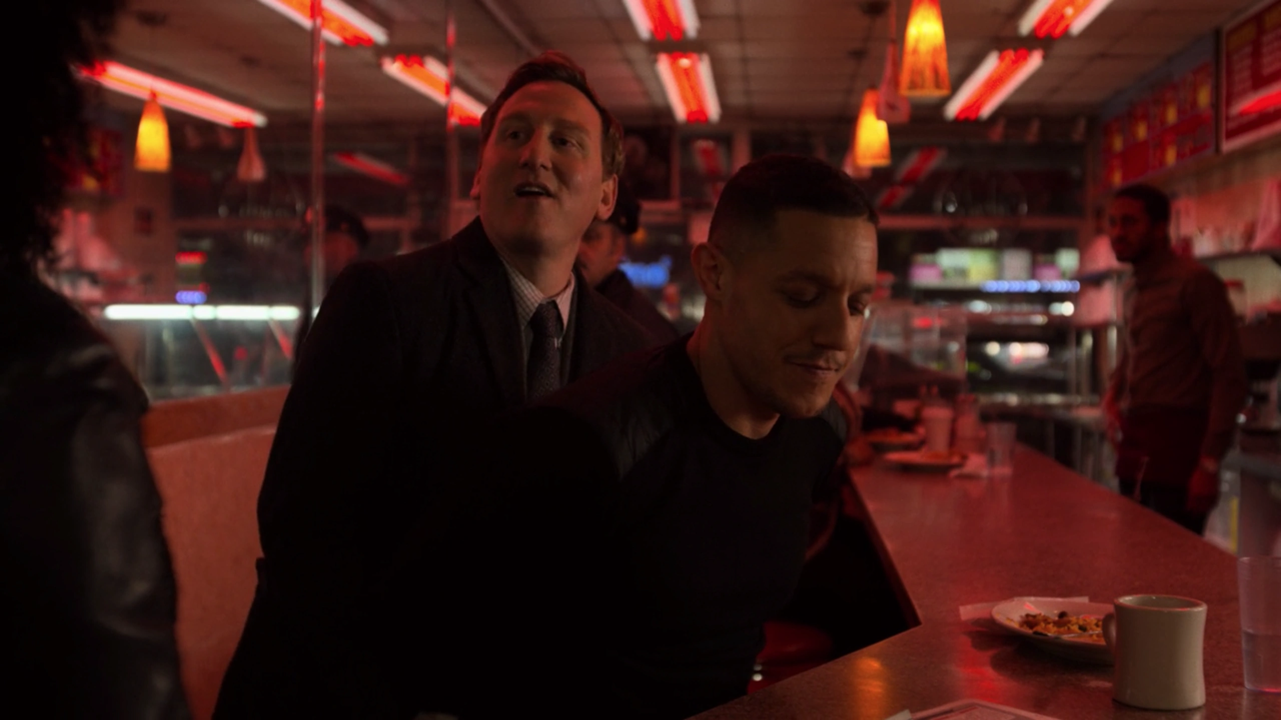 While some more officers from the New York City Police Department, including Mark Bailey had then entered the cafe, Knight explained that Shades had sent Patricia Wilson out of the interrogation room before she could explain that his deal would only work if Dillard was successfully convicted on her crimes, and now she was dead, his deal had fallen apart. Knight also explained that they had received a ledger containing Shades' dealings with Atreus Plastics and the gun sales he made. Shades laughed, calling Dillard a crazy bitch, before being handcuffed by Bailey and taken back into custody.[23]