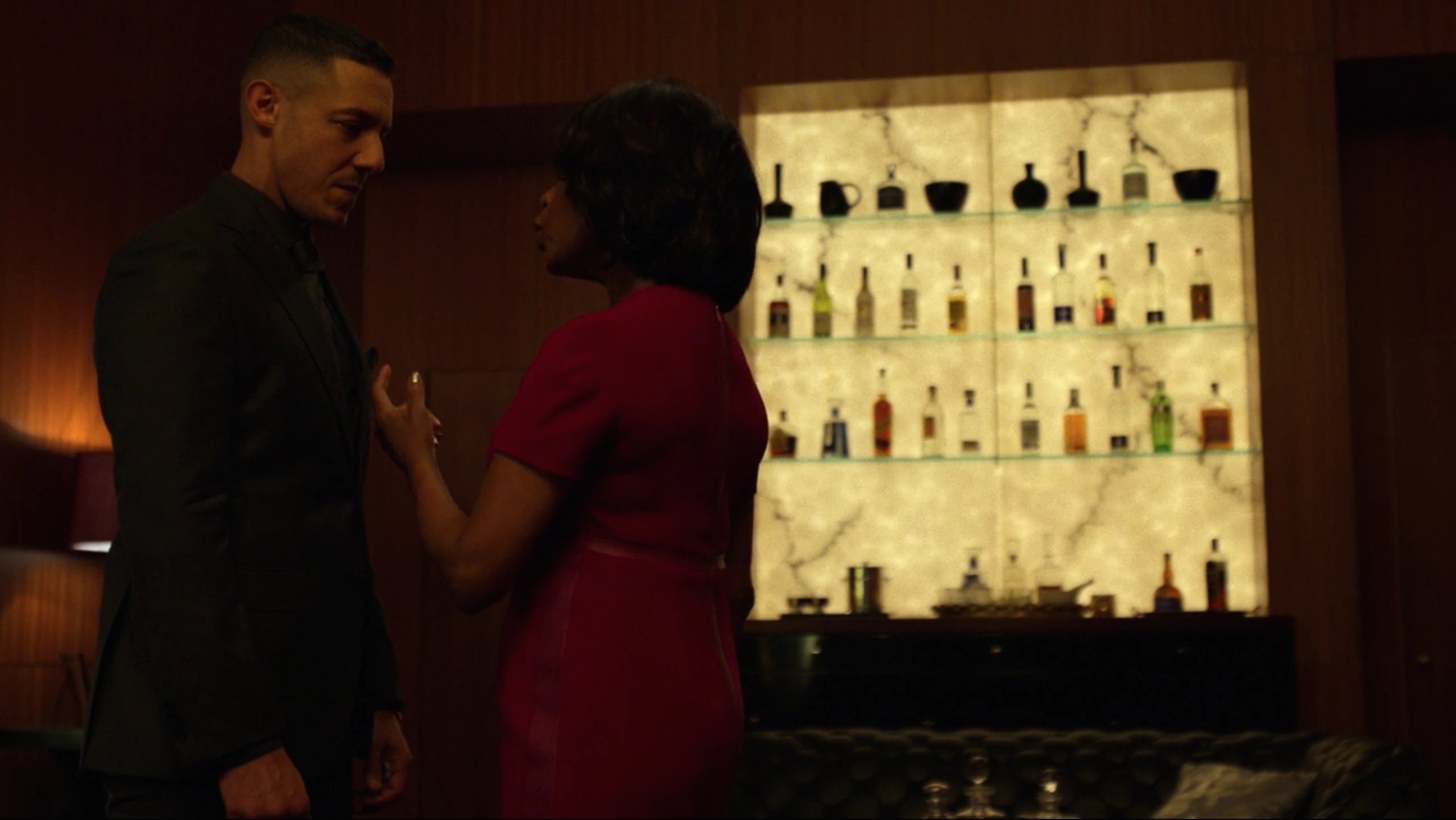 Shades returned into Harlem's Paradise where he then found Mariah Dillard drinking and flirting with Alex Wesley. Annoyed at this, Shades ordered Wesley to leave, and when Dillard then insisted that only she could tell Wesley when he could leave and not him, Shades had then responded by drawing his gun as Wesley quickly got out. Dillard had asked if Shades was jealous, which he insisted that he was not, claiming it was like he was seeing Dillard for the first time.