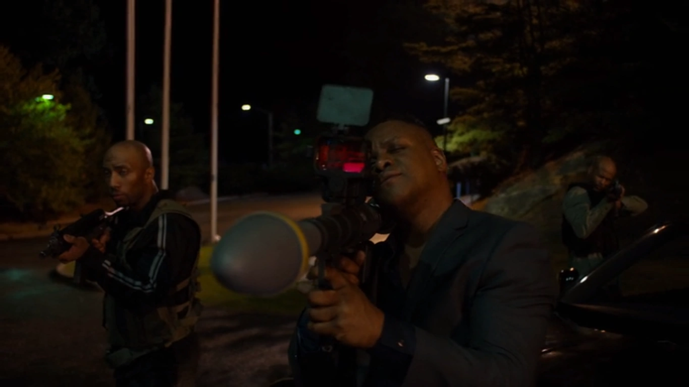 Sheldon using a rocket-propelled weapon