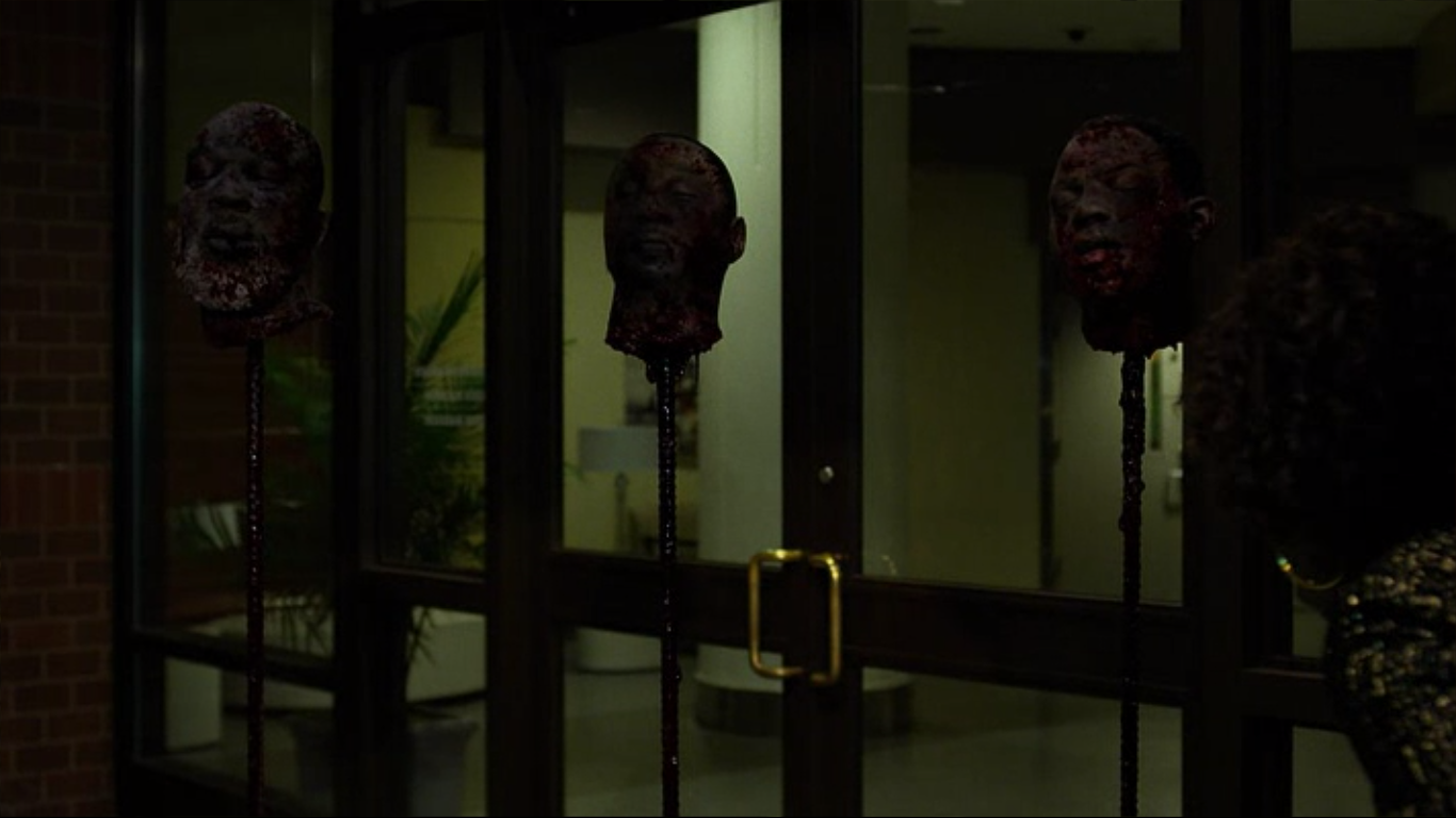 Prior to the opening of the complex, Bushmaster decided to send a message to Mariah Dillard through his violent way. Bushmaster brutally murdered Mark Higgins, Cockroach Hamilton, and Ray Ray, decapitated the heads of his victims, and placed them at the entrance of the complex. Later that night, the reporters came to the complex to make a report about Dillard and the opening of her project. However, as soon as she opened the doors, they saw the severed heads, much to their horror.[1]