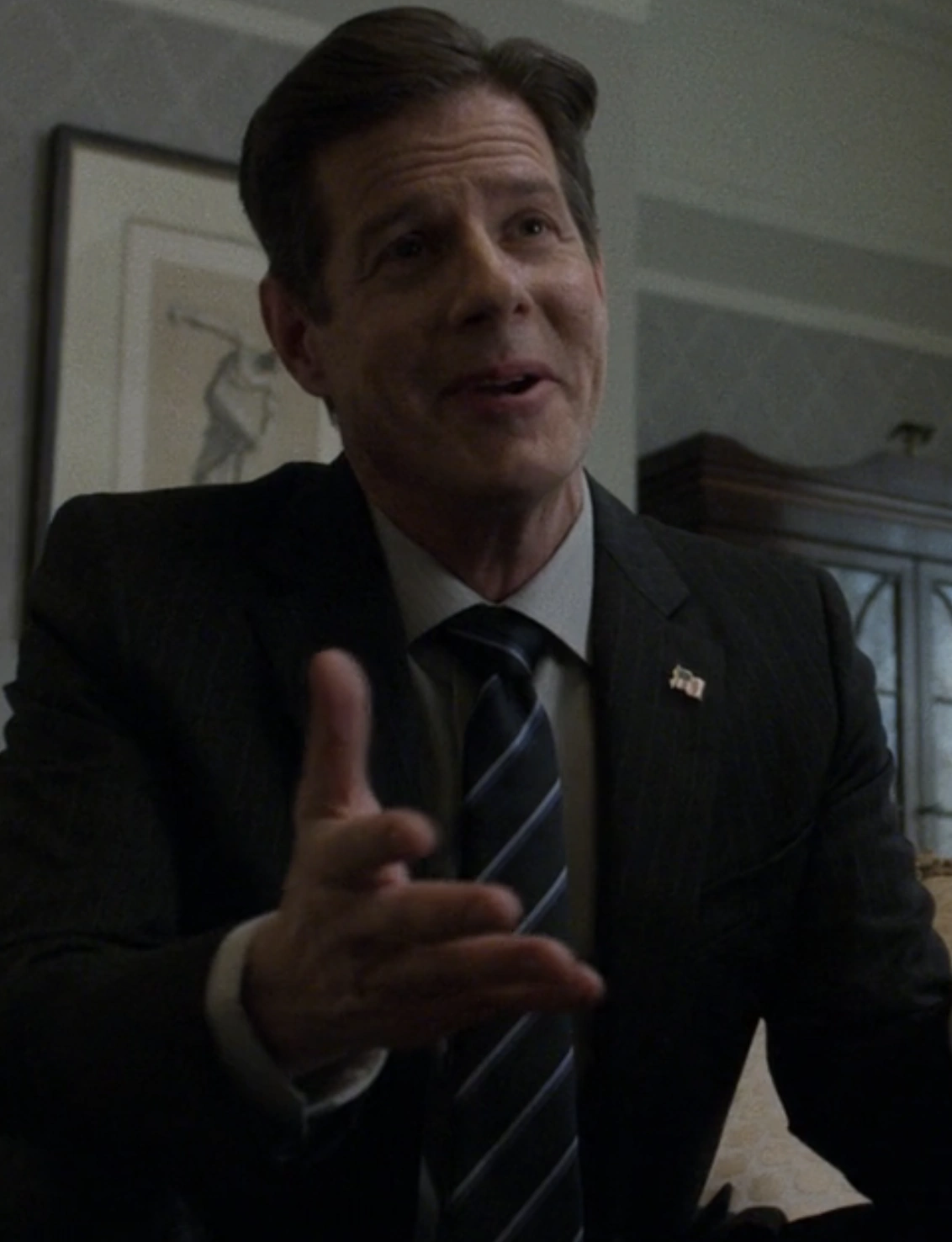 Talking with Langtry, Ori commented on his gun control policy, saying that limiting the spread of firearms would decrease the murder rate, to which Langtry replied that the bomber was using bombs instead of guns. Langtry told Ori that some local hero could shoot the bomber what also is part of the foundation that America was built upon. Ori argued with Langtry, saying that those times are gone.