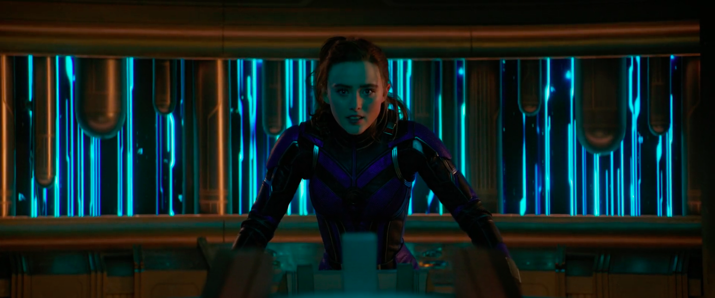 Kang the Conqueror arrived, and Lang listened to him speak to her father, making him an offer to steal something for him to get them both out of the Quantum Realm. When Kang mentioned knowing how things end, Lang enquired about what he meant, and he explained that he knew how everything ended, being able to see all of time and that other versions of him needed to be stopped. Scott refused to help Kang, so he began to hurt Lang, forcing Scott to agree to help. They were both released from their cells and brought to a portal outside.