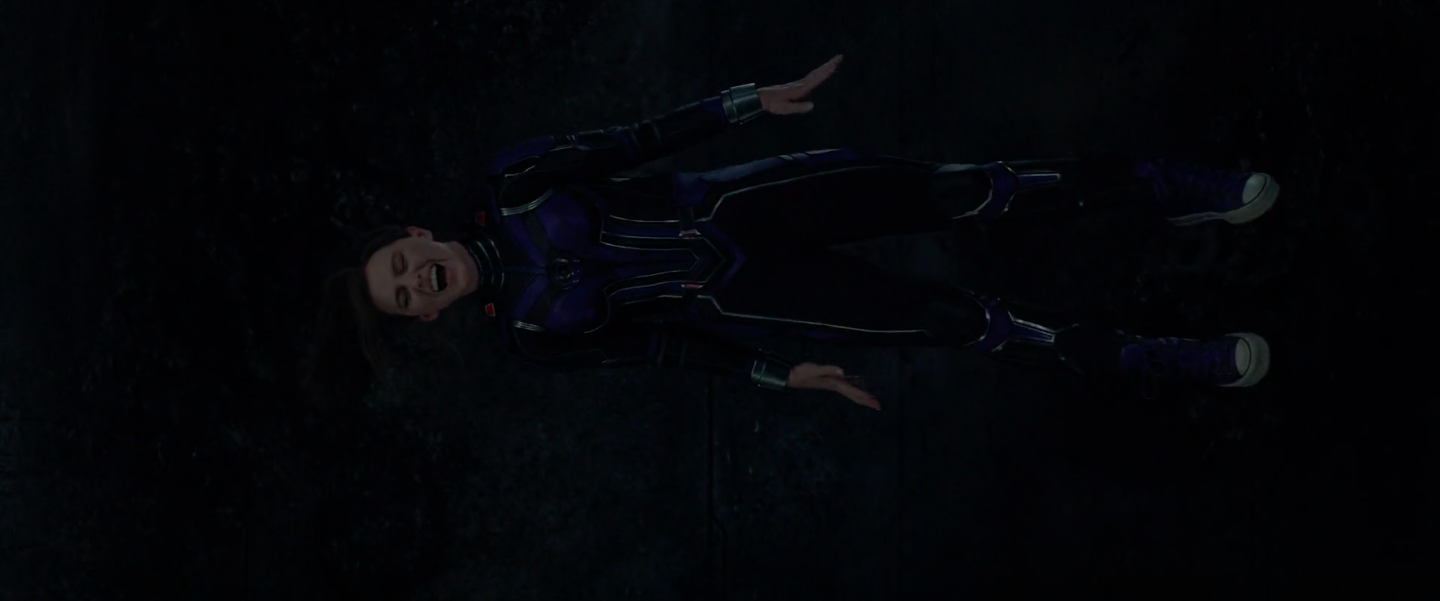 After her father successfully shrunk the Multiversal Engine Core, Lang was taken back to be put in her cell by two Quantumnauts. However, as they walked down a hallway, Lang used the discs on the Quantumnauts and escaped from them by shrinking herself and running away.