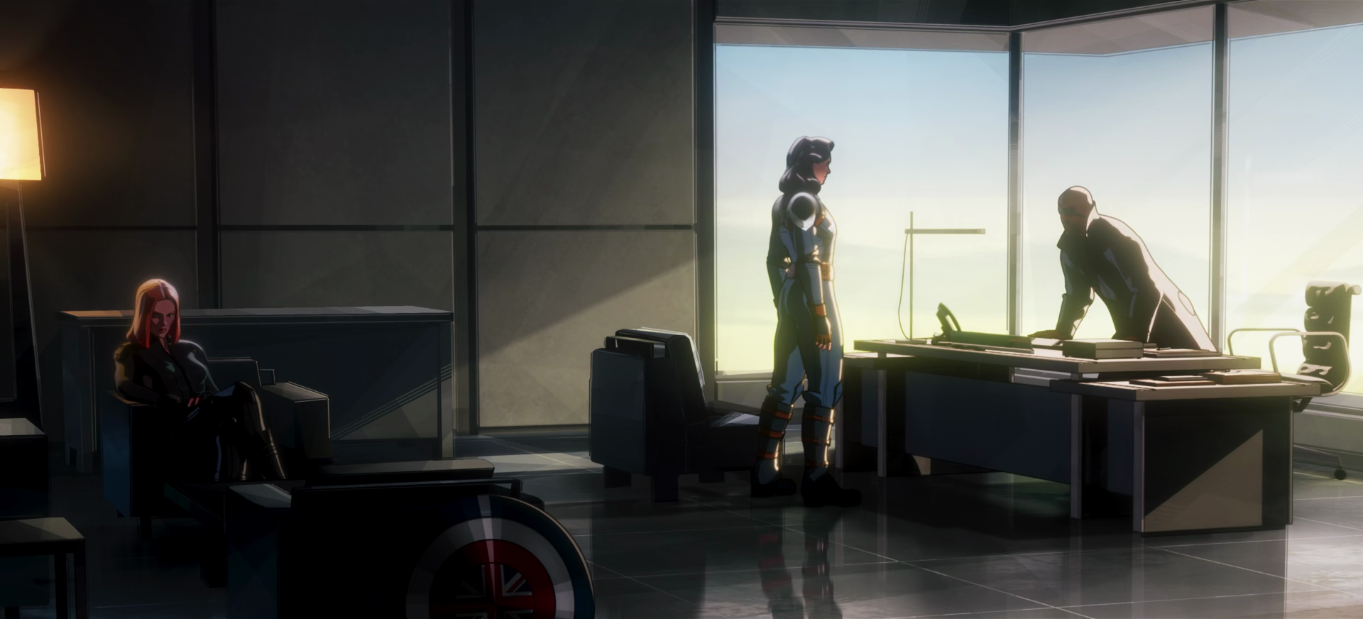 Captain Carter and Black Widow meet with Nick Fury