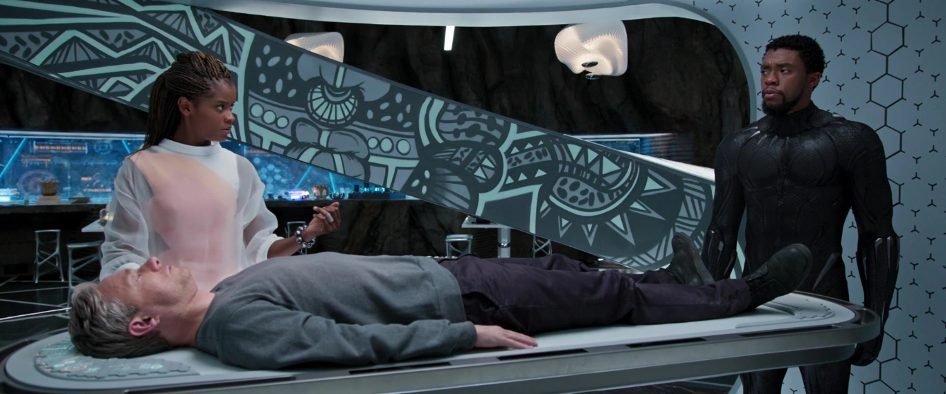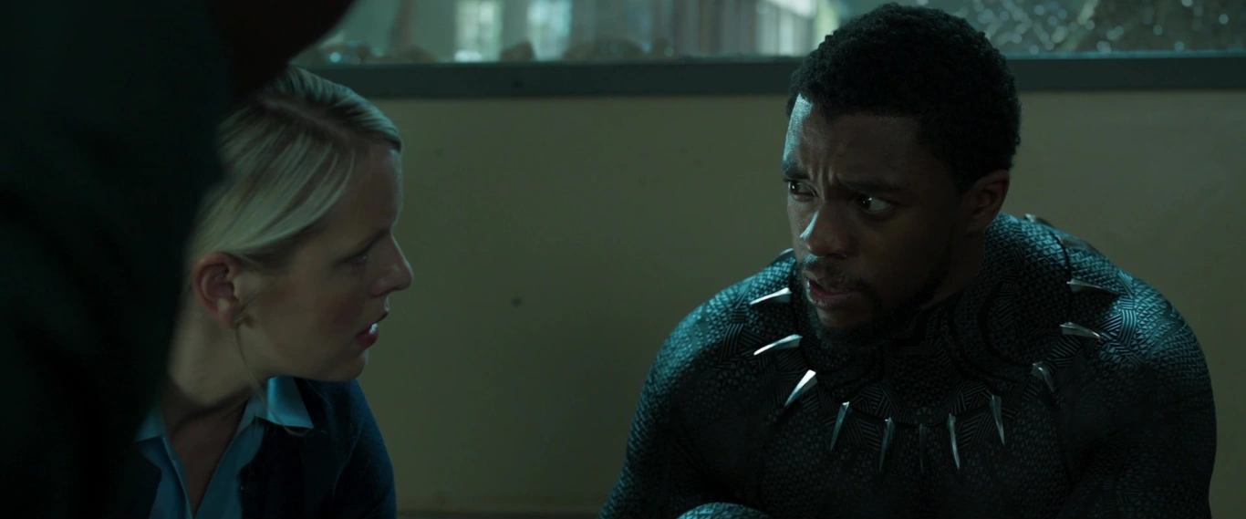 When Okoye interrupted their conversation in an intercom, T'Challa and Nakia separated from each other, noticing Everett Ross, noting that this mission had gotten complicated. Surprised to find that Ross was the buyer of Klaue, T'Challa greeted and questioned Ross' motives. Ross pointed that he would not listen after knowing that he wore a bulletproof cat-suit; despite being confronted for his secret, T'Challa swore to him that Klaue would be taken into custody by him.