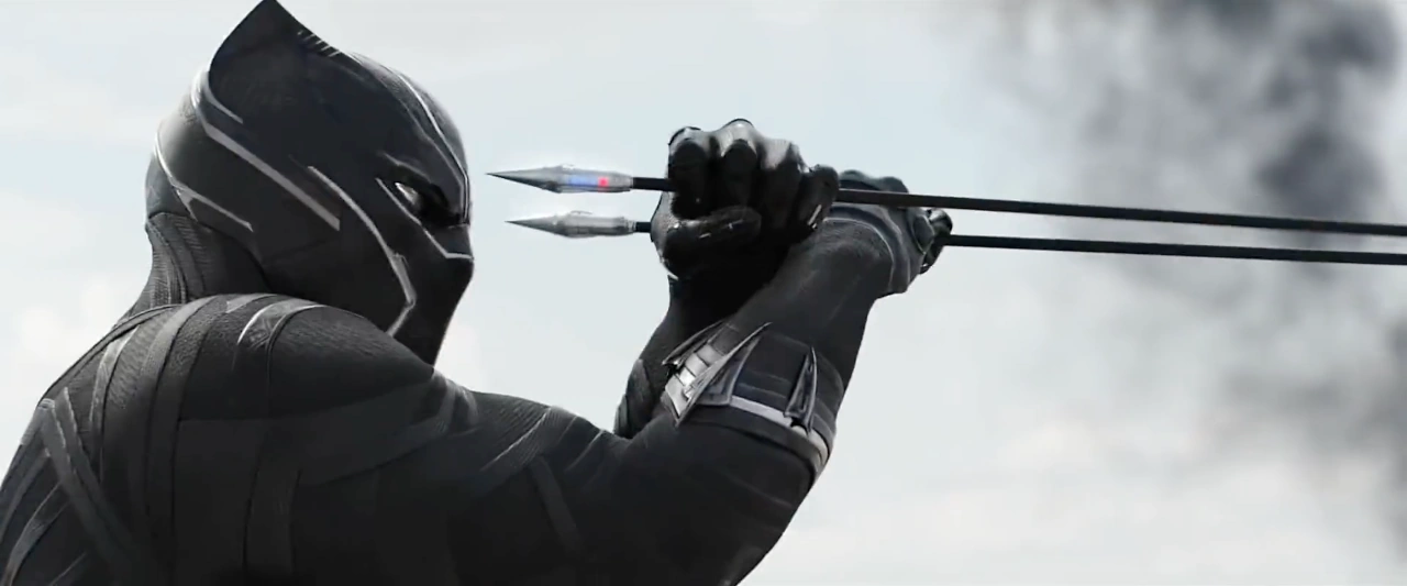With Vision's help, T'Challa was able to elude Ant-Man to reach the Quinjet Hangar. Before he could do so, Hawkeye tried keeping T'Challa at bay by firing many of his explosive arrows directly at him. T'Challa dodged many of the arrows and caught two before they exploded right in his face, angering him enough to fight Hawkeye by showing him his vibranium claws unleashed from his own Panther Habit as the Black Panther prepared to fight his legendary attacker.