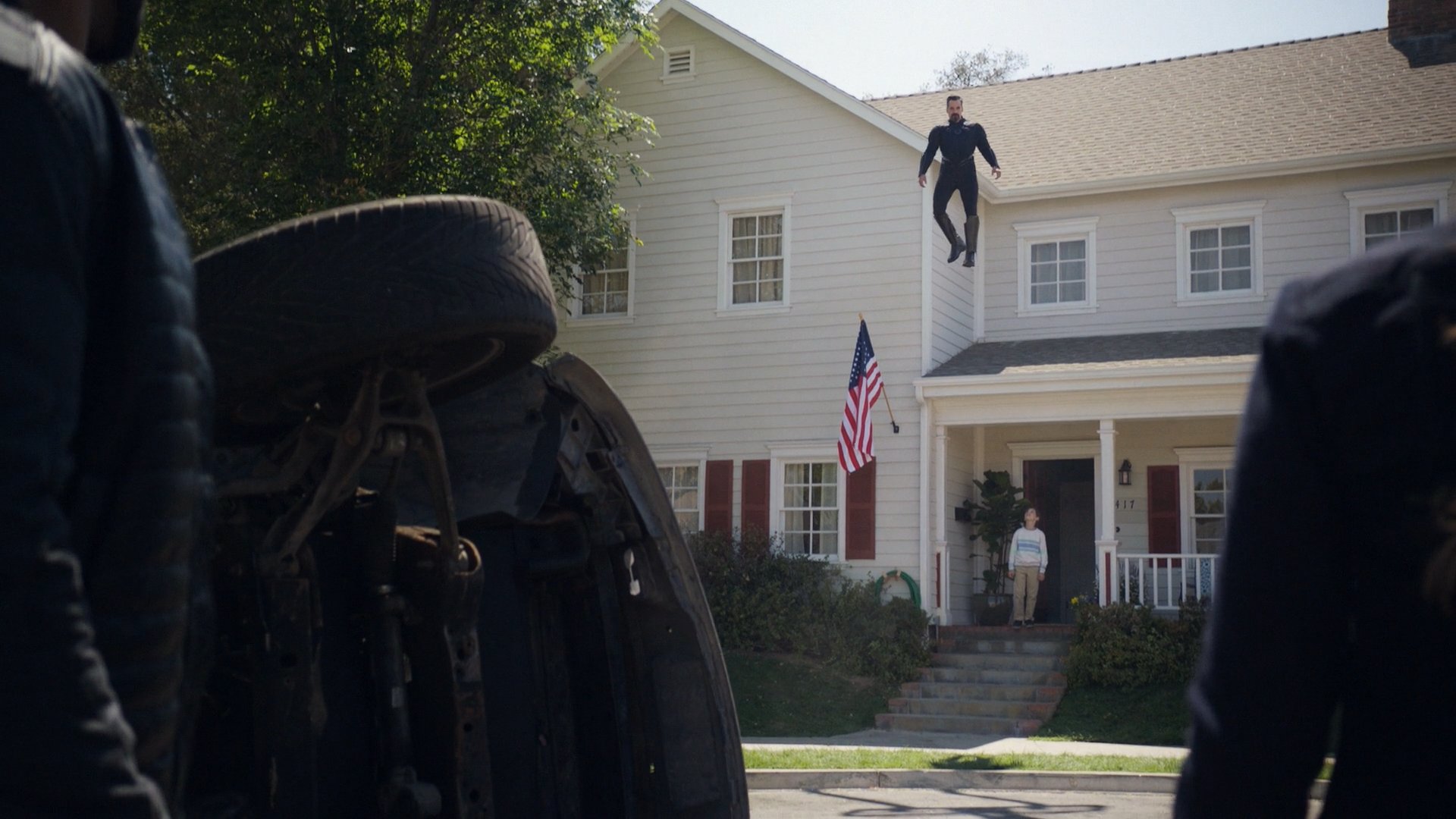 Getting outside, Glenn defiantly stood before the S.H.I.E.L.D. agents, lifting their cars in the air before crashing them onto the ground, which prompted several agents to shoot at him. However, Glenn simply blocked the bullets with his powers and threw them back at the agents. As he boasted about his powers, he was then confronted by his own son George, who got out of the house and accused his father of being a villain instead of a superhero. Although disagreeing with his son, Glenn did not hurt him, and instead promised that he would save the whole world soon before leaving the house's surroundings by flying away.[2]