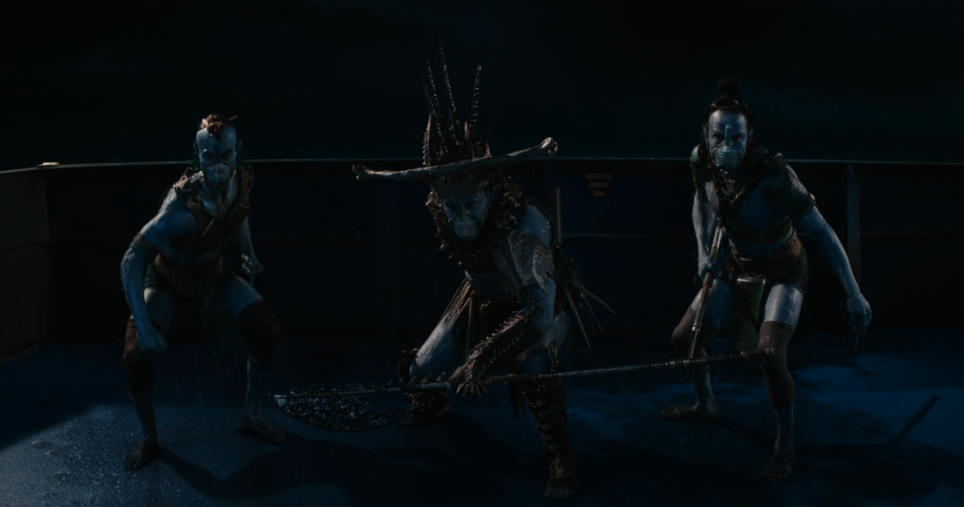 - "They were blue. And they had superhuman strength. And they came from the water on the backs of whales. I struck down three of them with blows that should've killed them, but they rose again. I wish to leave immediately to retrieve our princess."