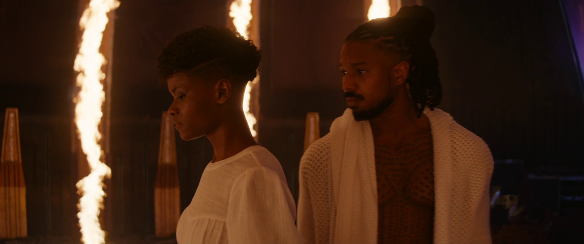Killmonger started talking and brought up T'Challa, much to Shuri's anger as she believed Killmonger was at fault for the death as if he did not burn the herb, T'Challa would have survived and so had her mother. Killmonger told her it was not on him and also told her not to take that away from Ramonda. The real fault was T'Chaka, who was a hypocrite. Killmonger then talked about how T'Challa let the man who murdered T'Chaka live because he was noble. So, he asked Shuri if she was going to be noble, or take care of business like Killmonger. Shuri awoke from the plane and walked over to the Panther Habit's revealing her own.[1]