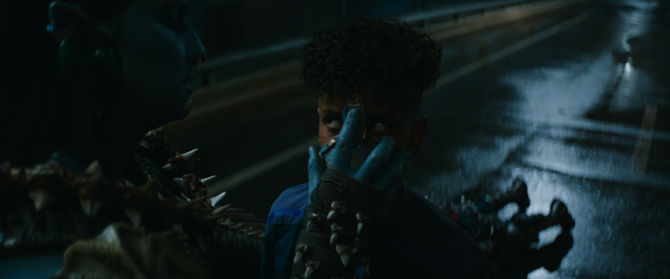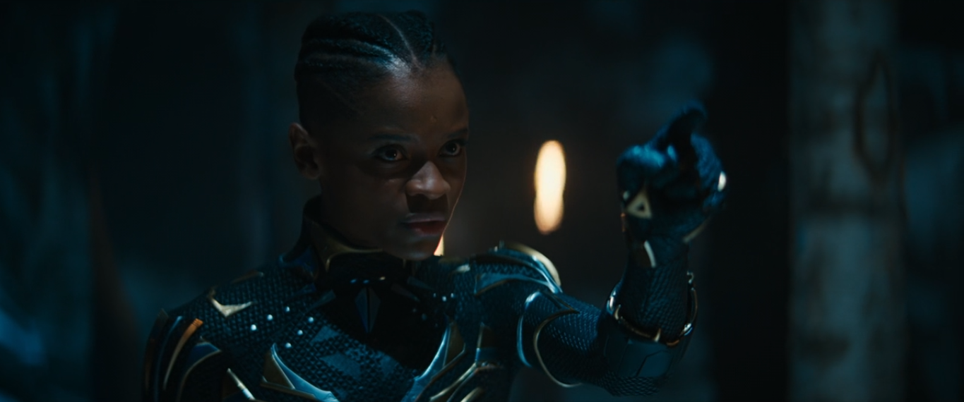 Black Panther was able to get the upper hand on Namor and approached him to finish him off. However, Namor was able to grab his spear and impale Shuri in the chest. Instead of finishing of Shuri, Namor knew he needed water and walked slowly to the ocean. As he did so, Shuri heard her mother calling for her, telling her to show him who she is. Shuri mustered the strength to break free and approached Namor, jumping over him.