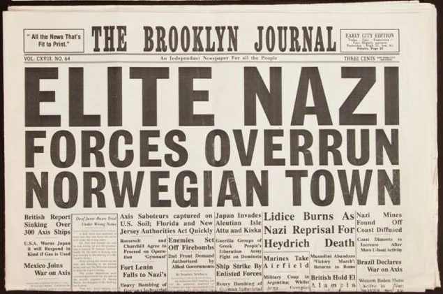 In the 1940s, The Brooklyn Journal wrote an article about Hydra seizing a small town.[1] A copy of the article was digitized in the Smithsonian Institution for an exhibit about Steve Rogers.[2]