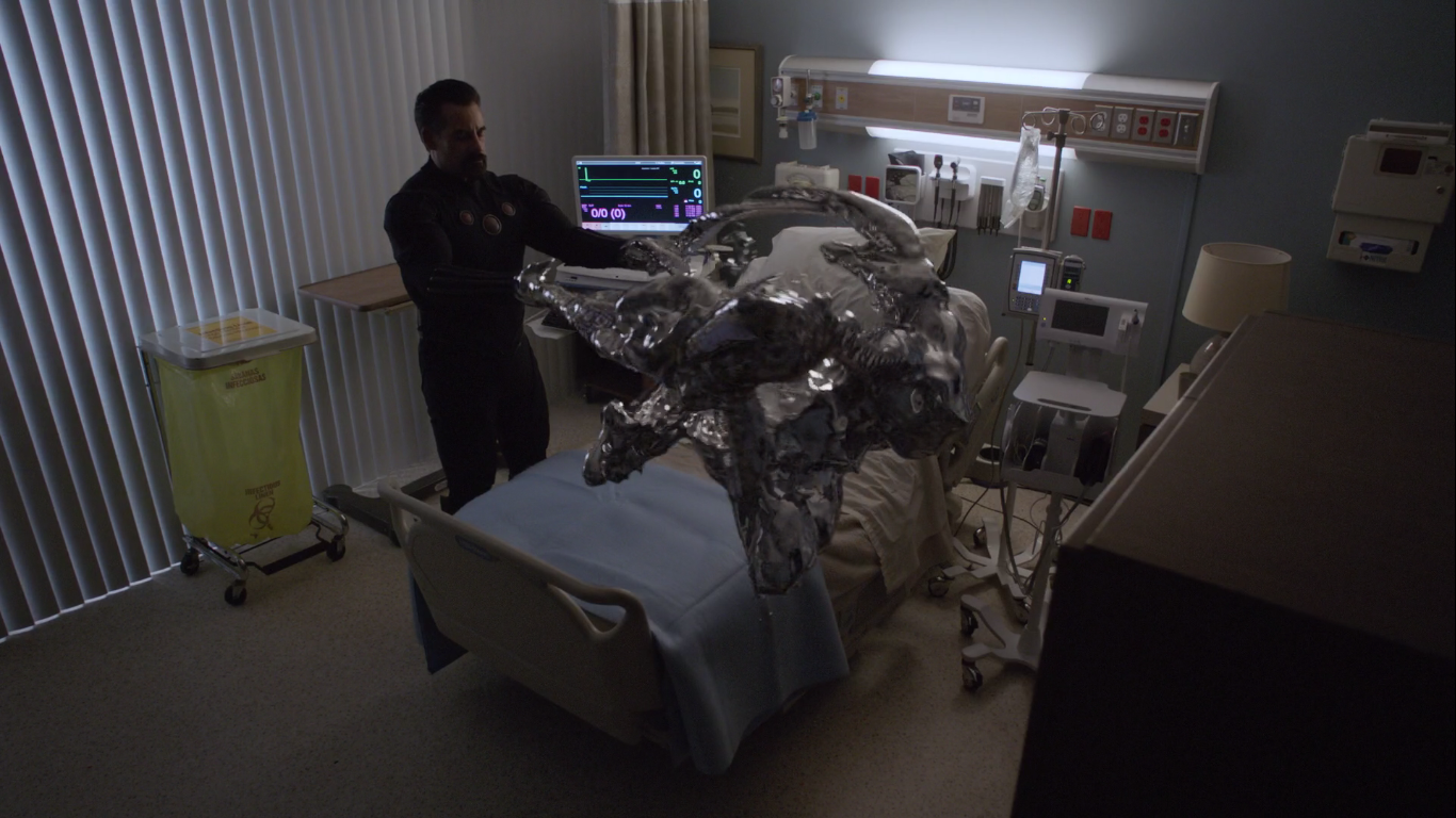 Talbot goes to visit Carl Creel in the hospital he is resting. Much to Creel's surprise, Talbot claims that he absorbed the Gravitonium and that he has a way of silencing the voices of Ian Quinn and Franklin Hall Creel keeps hearing. Talbot allows Creel to absorb the properties of the Gravitonium from his own organism, but he soon turns on Creel and absorbs him entirely so he can have more Gravitonium. In the Lighthouse, Mackenzie and Yo-Yo Rodriguez get video feed of the attack and resolve to stop Talbot.