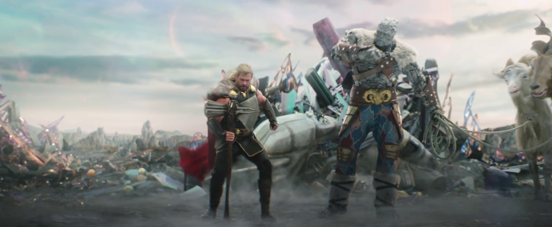 To aid in both pursuing his brother and finding his father to return peace to Asgard, Thor sought help from Doctor Strange, who led him to Odin moments before his passing to Valhalla. Shortly afterwards, Thor met Hela, the Goddess of Death and his half-sister. In the wake of his first encounter with Hela, Mjølnir was destroyed, and he was stranded in Sakaar, where he befriended Korg and was forced to compete in the Contest of Champions. Following a reunion and subsequent fight with Hulk, the pair allied with the rogue Valkyrie in order to save Asgard and escape Sakaar. Having battled Hela and losing an eye to her, Thor had Loki unleash Ragnarök and destroy Asgard, killing Hela in the process, although he escaped with the remaining Asgardians. Declaring that Asgard was all its people and not a place, Thor accepted his newfound position as king and decided to relocate the Asgardians on Earth.
