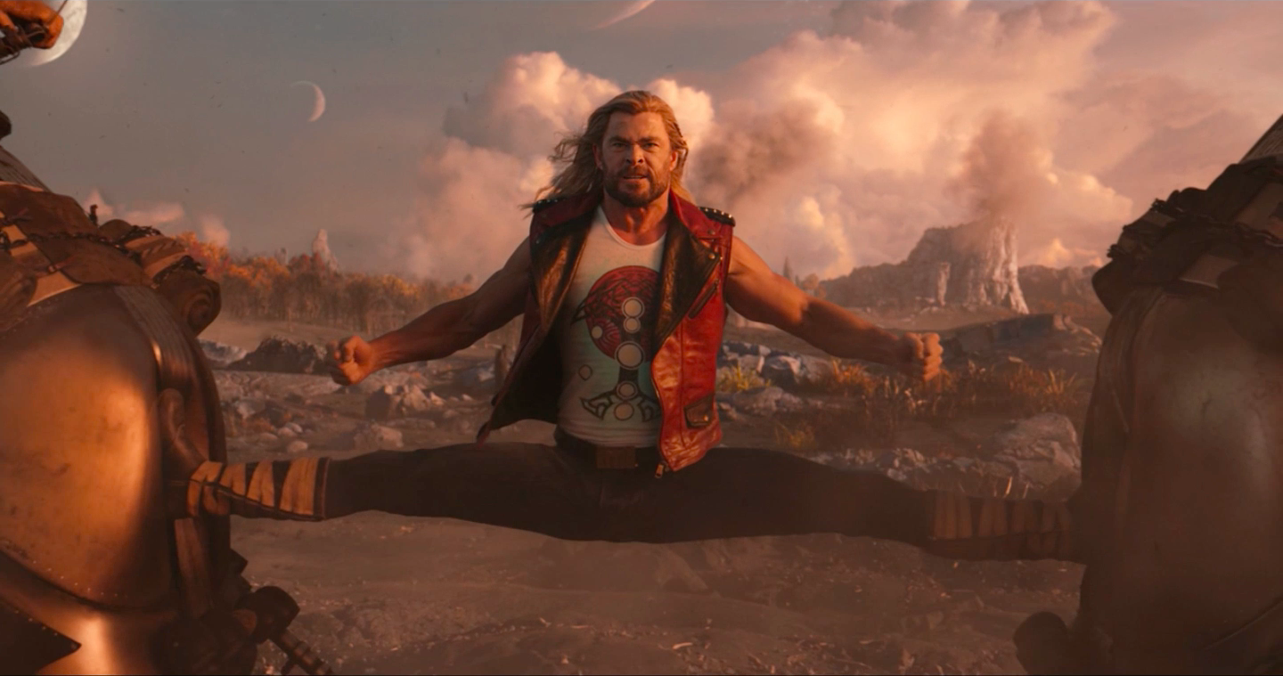 During a battle with the Guardians of the Galaxy against a group of rebels, Thor stopped two approaching vehicles using only his legs. He did this by going into a split position where he stopped each with one leg. He could also do various flips while fighting Gorr the God Butcher and his Shadow Monsters.