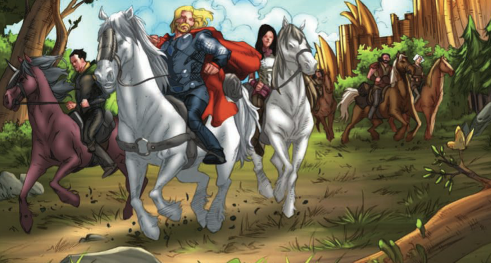 As they were talking, Sif and the Warriors Three arrived, with Volstagg being horrified at finding the now overturned dinner table. Thor announced they were going to Jotunheim and that he would lead them to victory. The group was fearful of the idea, noting that the Frost Giants were not easy foes to overcome. Although they were initially skeptical over the risks, Thor reminded them of their past victories and soon changed their minds about the attack.