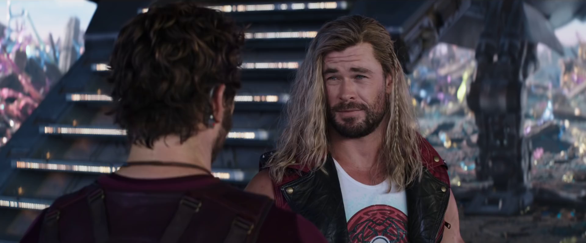The red war paint adorning Thor's Sakaaran armor translates to "Lord of Thunder."[42]