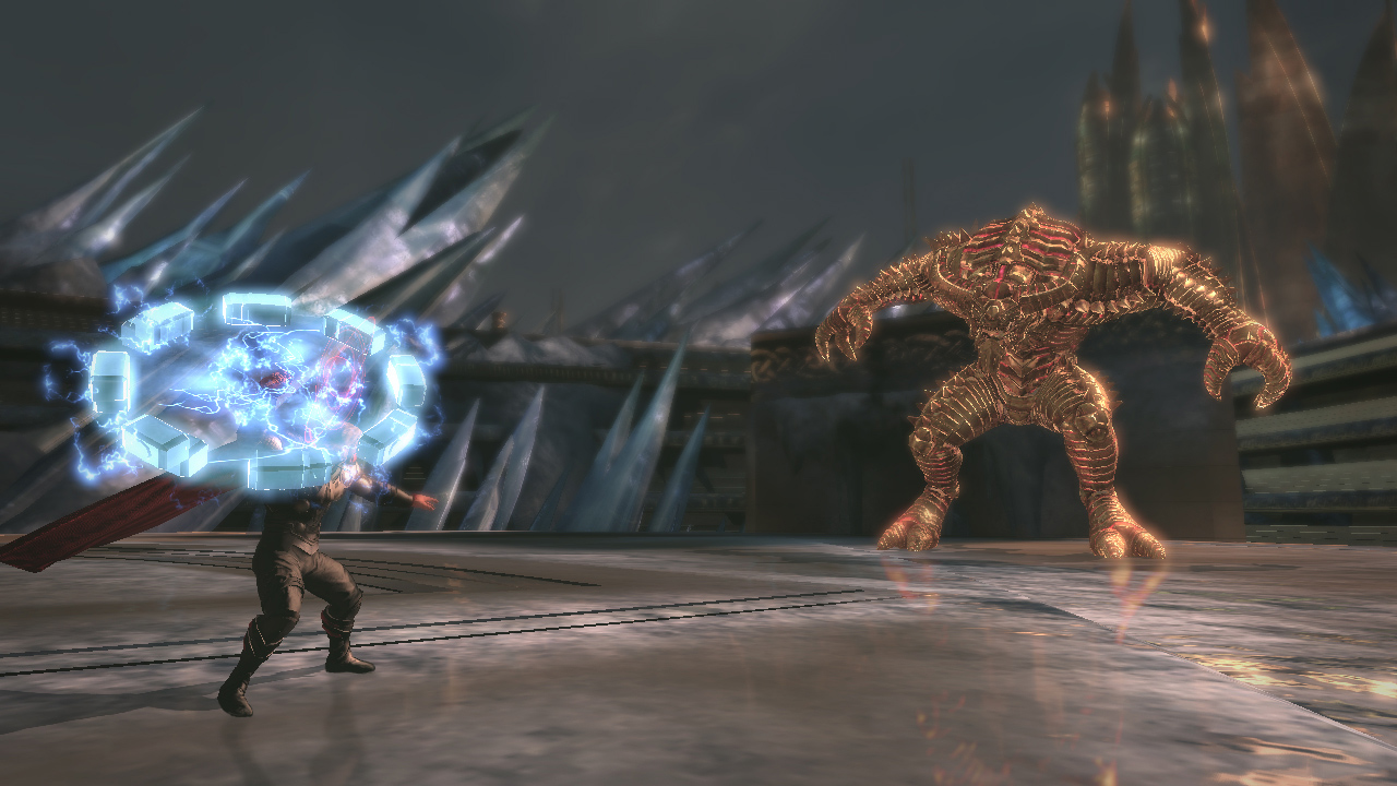 Thor was confronted by a Frost Goliath and destroyed its armor, knocking out the Frost Giant inside. Two turrets then appeared and started firing at Thor, but Thor destroyed them. Thor entered the spire's cavern and found it guarded by rising icicles. He avoided them as he approached the central cavern, but got confronted by two walls closing in on him. Thor used his hammer to separate the walls and approached the door to the central cavern, opening it with MjĂžlnir. Ymir threatened Thor as turrets started firing at him, but Thor destroyed them. Thor fought his way through several Frost Giants and destroyed the accelerators powering the Spire, he then went to the top and fought the guards, destroying the Spire's defenses and then the Spire itself.