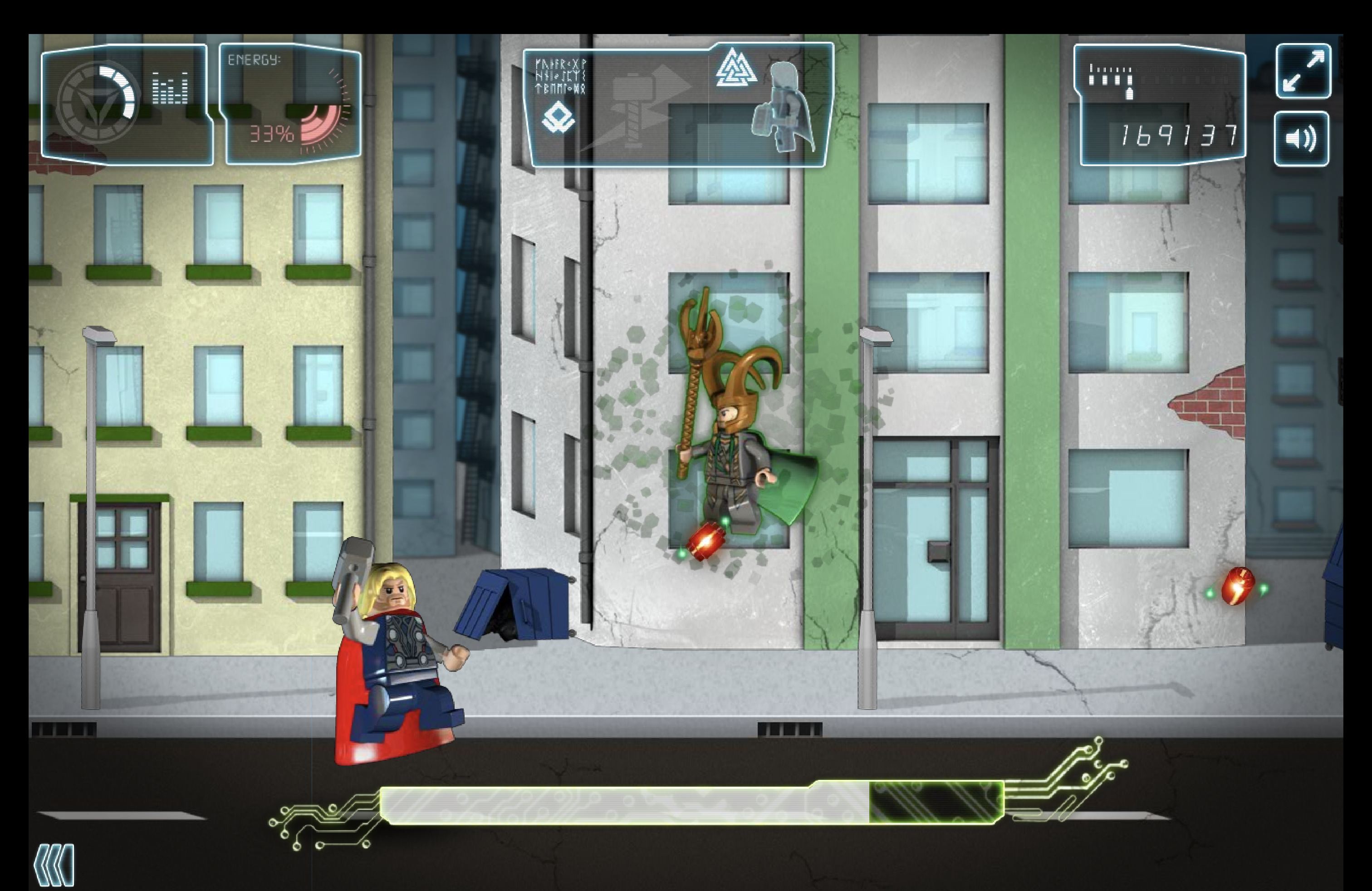 When Loki attacked Earth with his Chitauri, Thor was forced to fight his brother. Thor ran through the streets of Manhattan and blasted many Chitauri with his lightning. Meanwhile, Iron Man helped him from above. Eventually, Thor met his brother face to face. Although Loki used Gungnir to blast Thor, the latter took care of his brother easily and retrieved the Tesseract.[2]