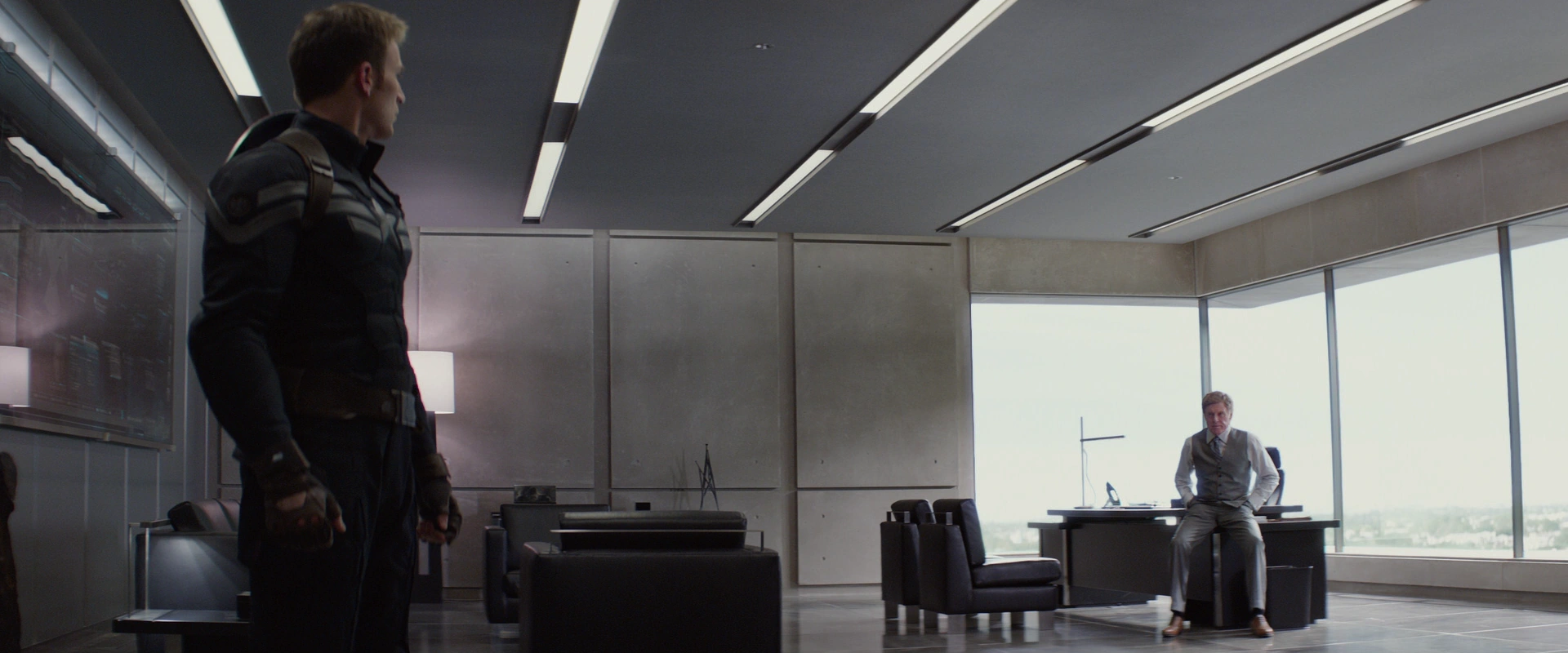 Captain America meets with Alexander Pierce in his office