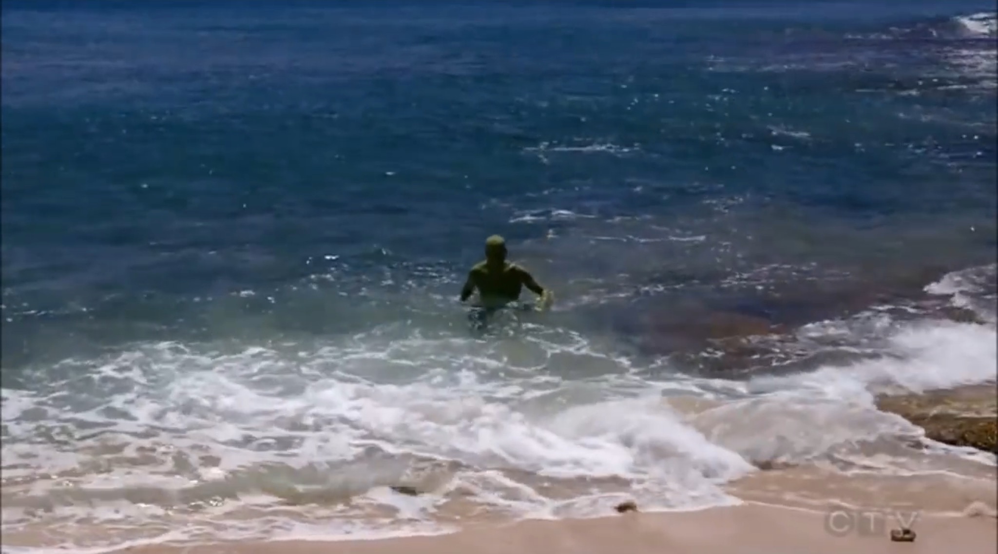 Before he was able to summon Lockjaw and take them to safety, the Attilan Royal Guards found the two, scaring the girl and causing her to run. As Triton tried to help her, Jane was shot down from behind by Hunter One and fell to the ground wounded and presumed dead. With the person he was sent to protect now dead, Triton attempted to escape from the military by headed towards the ocean, when he was shot in the stomach. Triton was able to make it to the ocean but due to his wound, he fell off the cliff and into the ocean.[2]