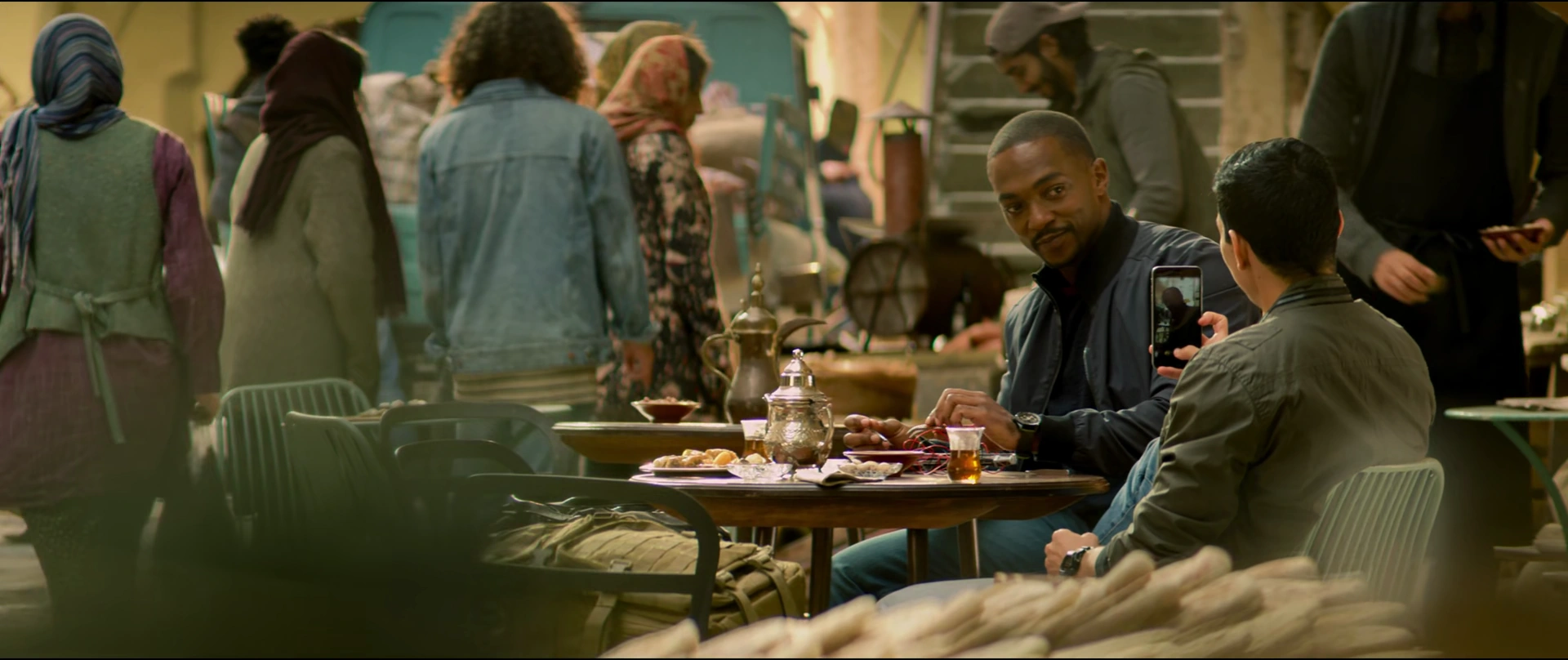 After rescuing Vassant, Wilson and Torres went to a nearby town to a café. After getting seated outside, Wilson was thanked for his service by a man whose wife was resurrected in the Blip. He then began repairing Redwing, which was damaged during the fight, and was informed by Torres about the Flag Smashers organization.[3]