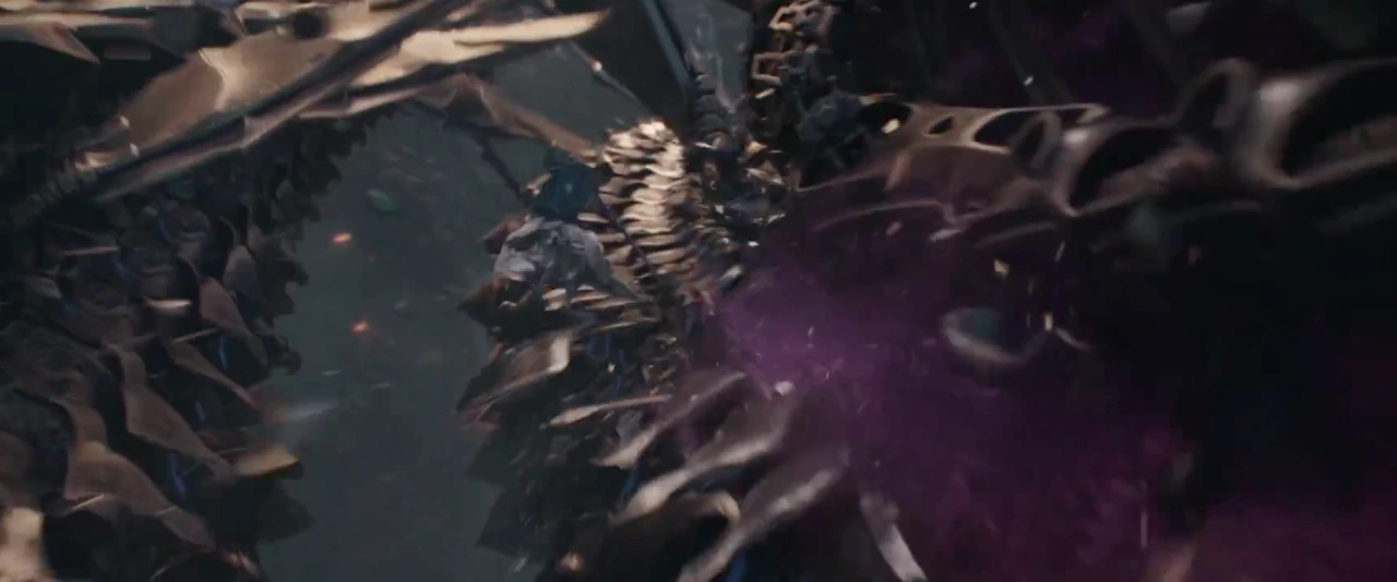 Valkyrie then witnessed Carol Danvers's arrival, with her destroying the Sanctuary II, and joined her, along with Wanda Maximoff, Okoye, Potts, Shuri, Mantis, Nebula, Gamora and Wasp in fighting past the army to reach the Quantum Tunnel. Valkyrie managed to down a Leviathan by using her spear to tear through its thick armor, which Maximoff held back.