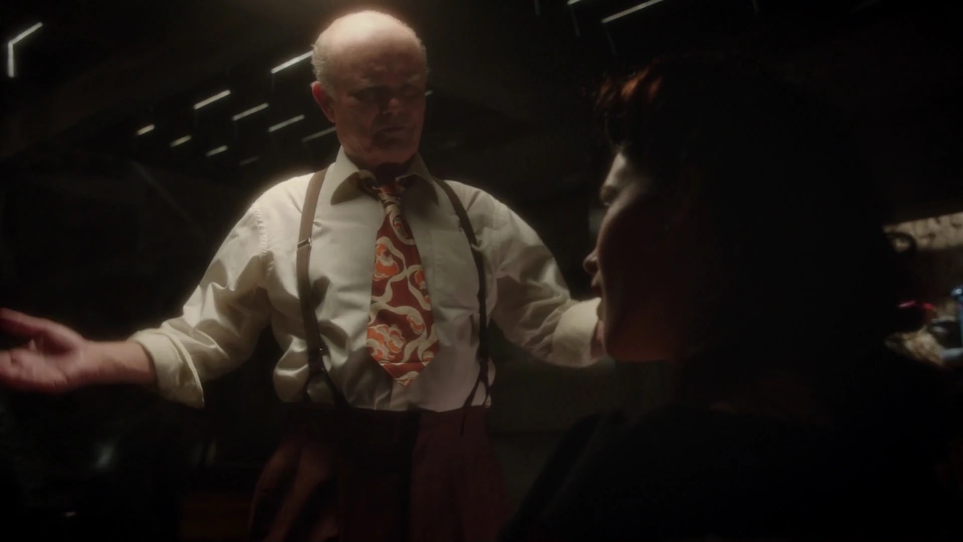 Masters stormed upstairs and furiously insisted that he was on the verge of getting Underwood to talk about her work with the SSR, although Frost remained unconvinced. Masters questioned Frost about the need for Manfredi and his Manfredi Crime Family mobsters, but Frost insisted that Manfredi was provided protection and his men followed his orders which she felts Masters' men did not do. They discussed how Isodyne Energy could make new Atomic Bombs but Frost insisted they must be the same as the original test. When Frost revealed her scars while drinking with Manfredi, Masters had to look away before Frost decided to question Underwood personally.[1]
