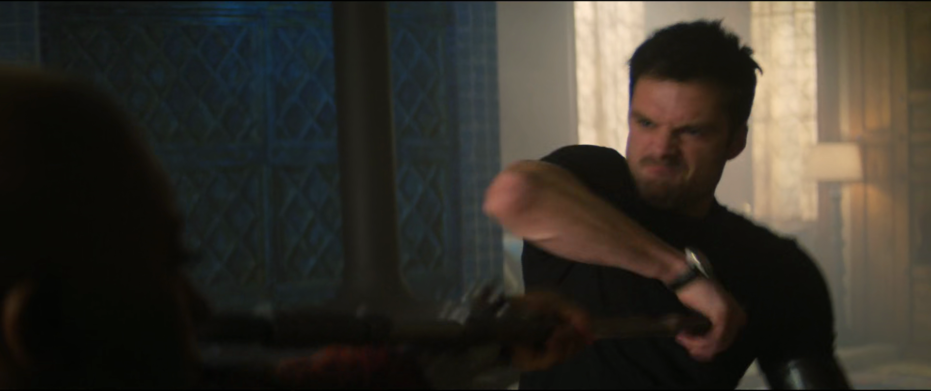 Push Dagger: Winter Soldier used a push dagger sheathed on his right boot to kill a bodyguard during his assassination at Hotel Inessa.