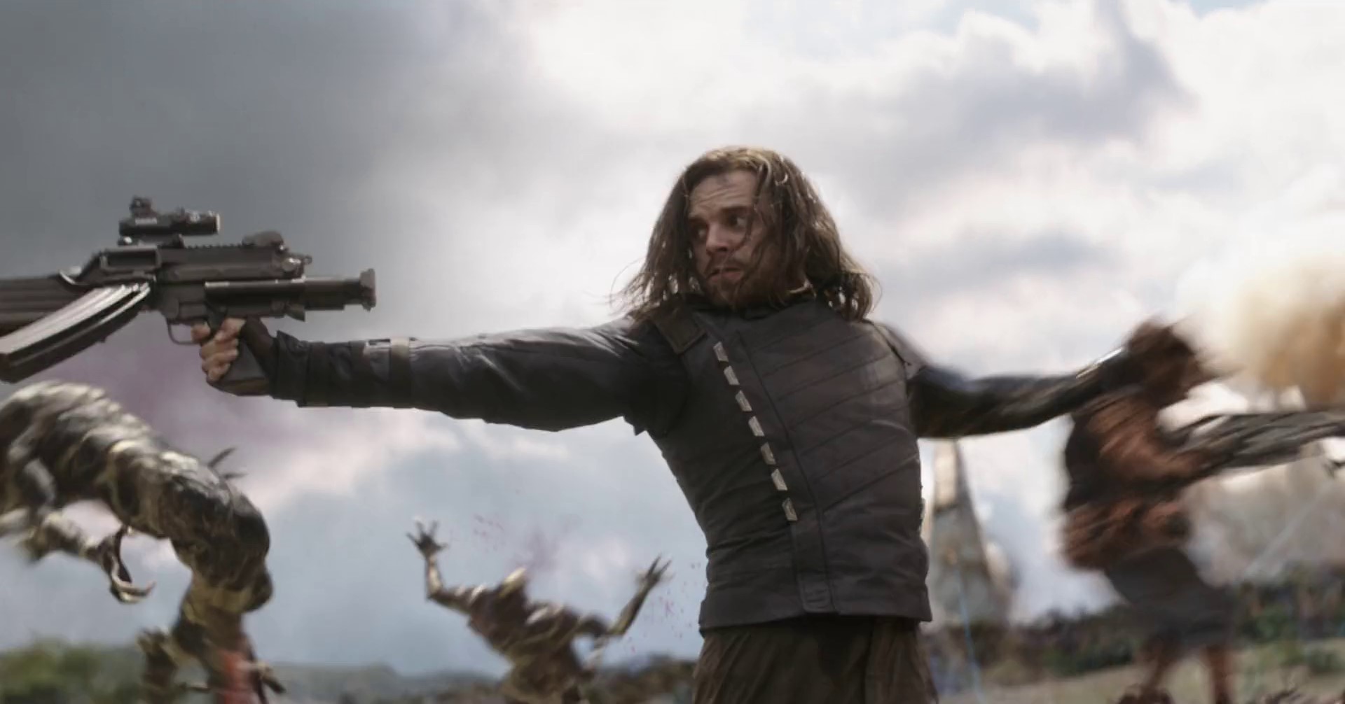 Barnes is an extremely skilled marksman, being able to handle firearms with remarkable precision, even prior to being turned into Winter Soldier. During World War II, he shot a Hydra operative that even Captain America did not see until he was down. His marksmanship was deemed invaluable to the Howling Commandos destruction of Hydra's bases and the thwarting of the Nazi troops. Colonel Chester Phillips remarked that his long-range scope accuracy is 90%.[18] As the Winter Soldier, he became an even deadlier master marksman. He accurately fired a single round through Black Widow's stomach and into a nuclear scientist that she was protecting, killing him. Winter Soldier is also capable of making long-range shots without the use of a rifle, for example, shooting Nick Fury multiple times through the wall of Steve Rogers' apartment and from the top of another building. Barnes has also proven to be highly skilled with pistols as well, being able to accurately fire at Rogers while fighting him in close combat, even managing to land a single shot on Rogers and thus push him into defensive, and later even manage to land two shots on Rogers with one bullet went through his stomach when he was stopping Project Insight from initiate. As the Winter Soldier, Barnes has caught and handled Captain America's Shield on two occasions and showed impressive ability in doing so. He was also able to use his gun to swiftly take out many Outriders during the Battle of Wakanda. He even attempted to shoot Thanos to prevent him from extracting the Mind Stone out of Vision, only to be subdued by Thanos, who blasted him into the bushes with the Power Stone. Barnes later on easily shot multiple mercenaries hired by the Power Broker with a pistol.