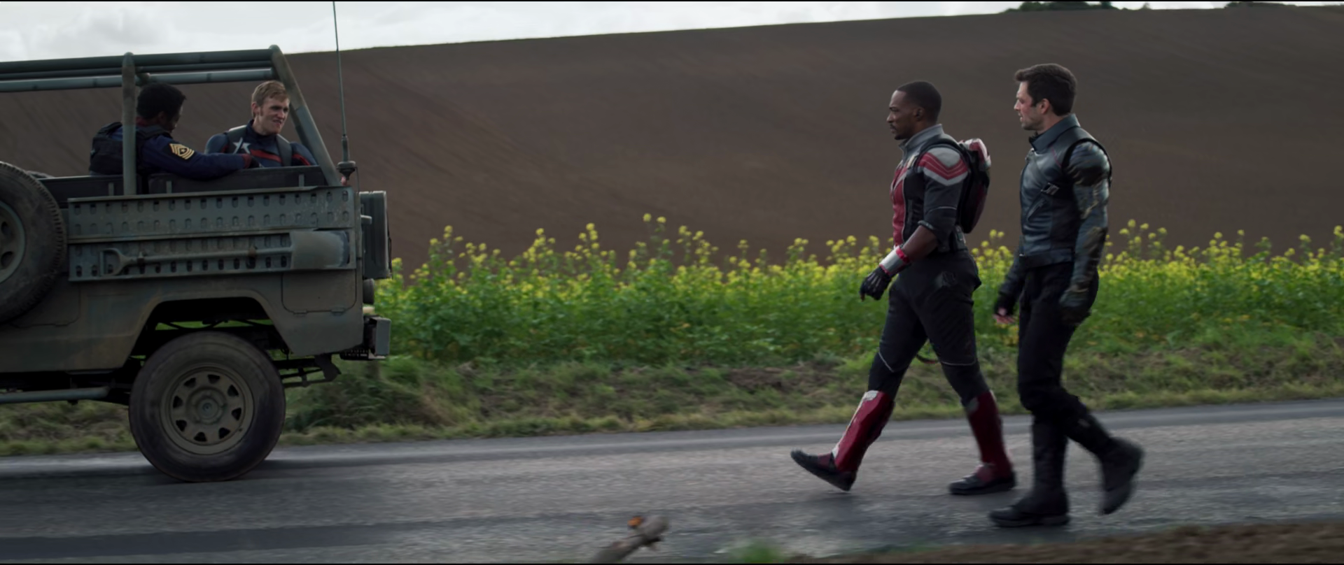 Winter Soldier flipping onto a moving car