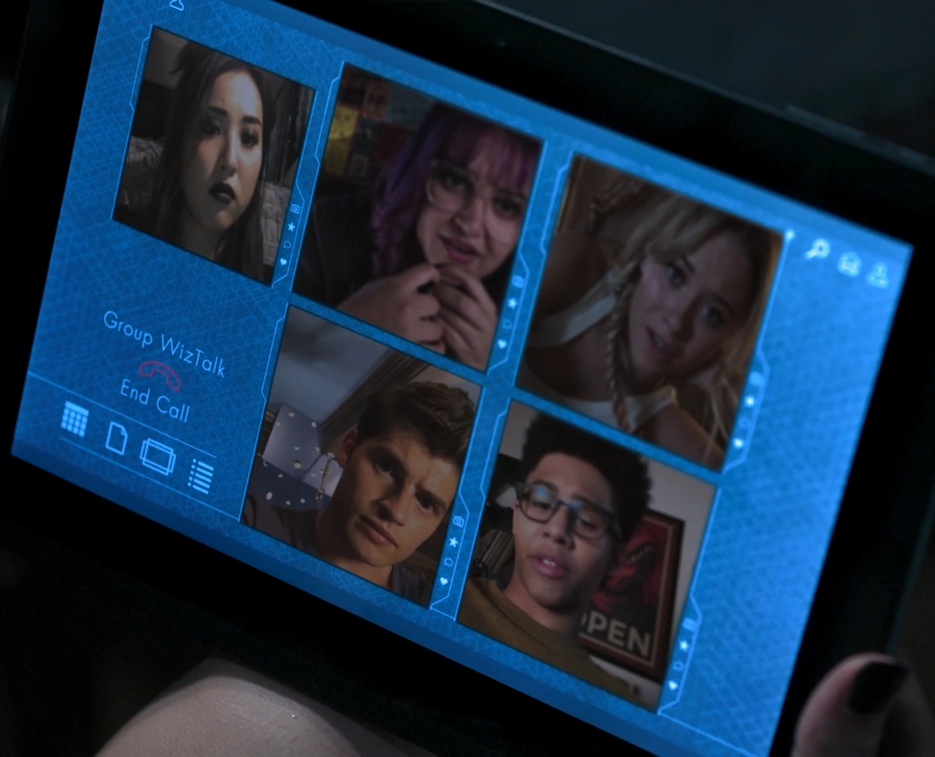 WizTalk was used by Nico Minoru, Gert Yorkes, Karolina Dean, Chase Stein, Alex Wilder and Molly Hernandez when they attended a group video call following the news of Destiny Gonzalez's body having been found on a beach. During the video call conversation, the group discussed the possibility of their parents being murderers.[1]