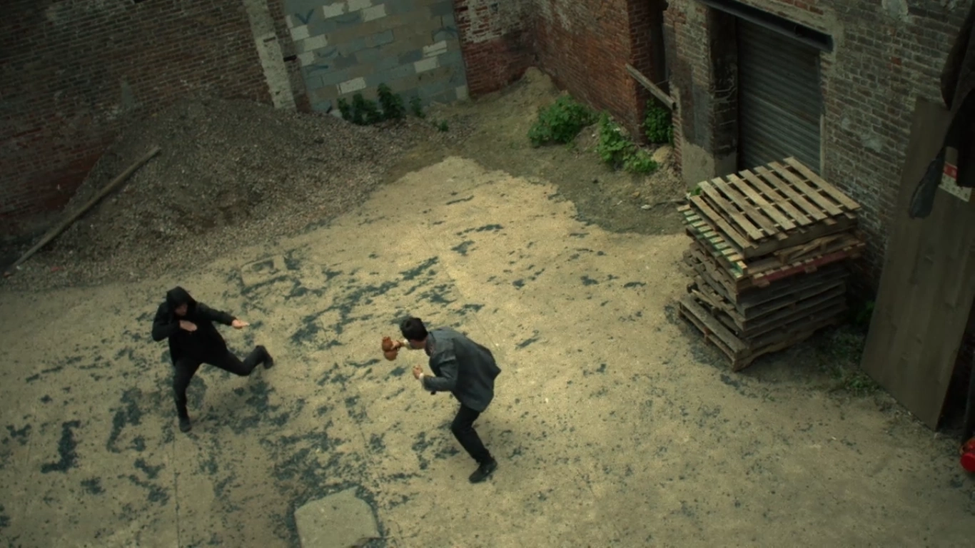 Cheng attacked once again, flipping through the air and kicking Rand in the stomach, before momentarily falling asleep again once he hit the ground. He awoke and rolled over into a pose, telling Rand that while he was not impressed by his fighting, he very much liked his haircut. He stood once again and grabbed a hold of Rand, stating that the one thing they had in common was that they both swore an oath of protection. Rand told Cheng his masters were murderers and broke his flask. Angered by this, Cheng attacked with renewed fury, causing Rand to bleed internally with a kick to the stomach. Rand struggled to his feet and went after Cheng, knocking him into a wall and temporarily overpowering him.
