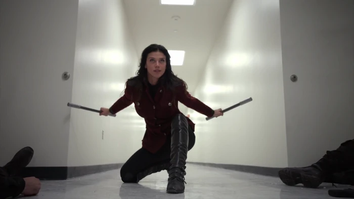文件发送后,所有人看向西蒙斯。巴克希派了安保团队抓捕她。莫尔斯带领队伍,西蒙斯被困住。莫尔斯拿出她的武棍打败了特工原来她也是神盾局卧底特工。两个人被追到屋顶,她们跳到等待她们的安东尼·崔普利特驾驶的隐形昆式战斗机上。